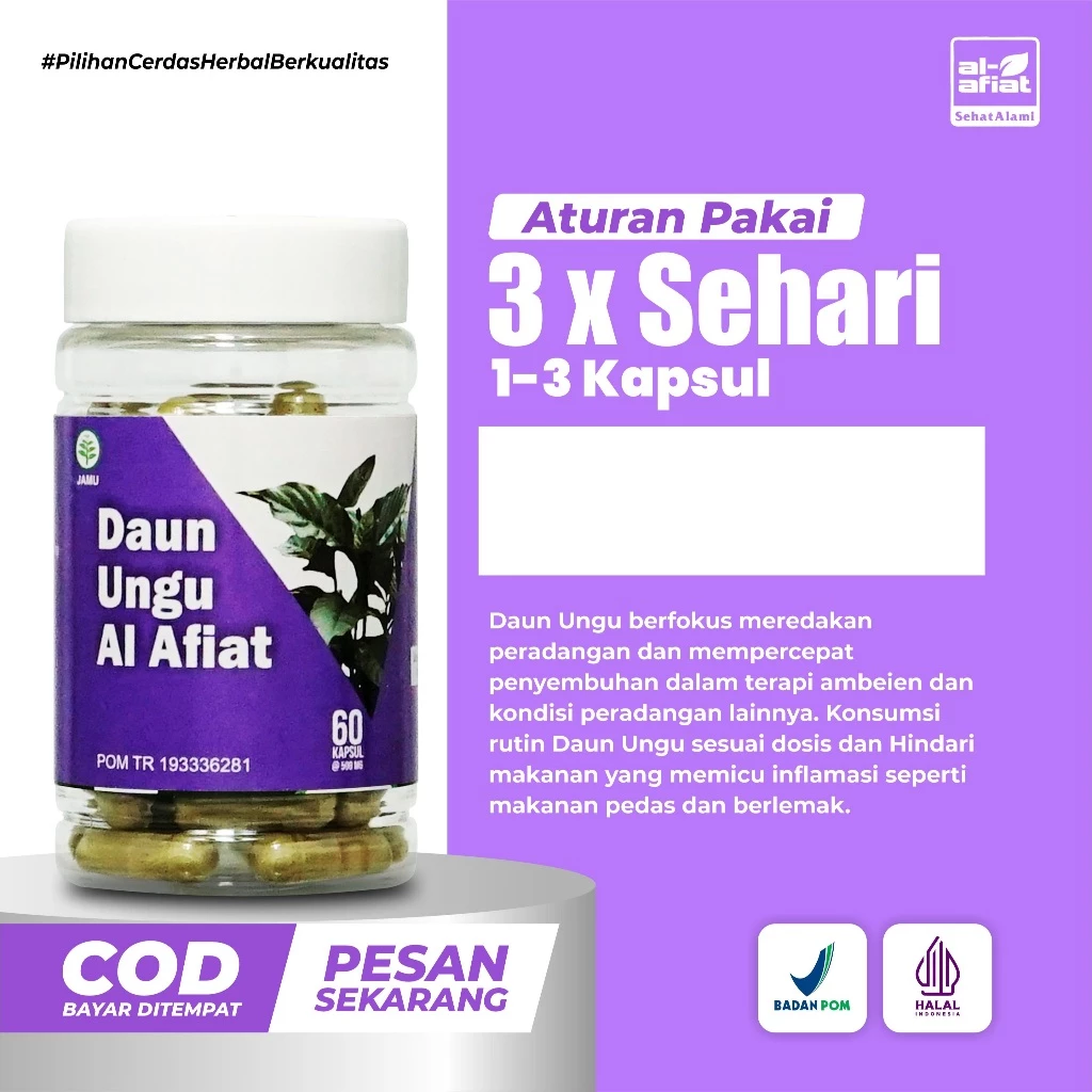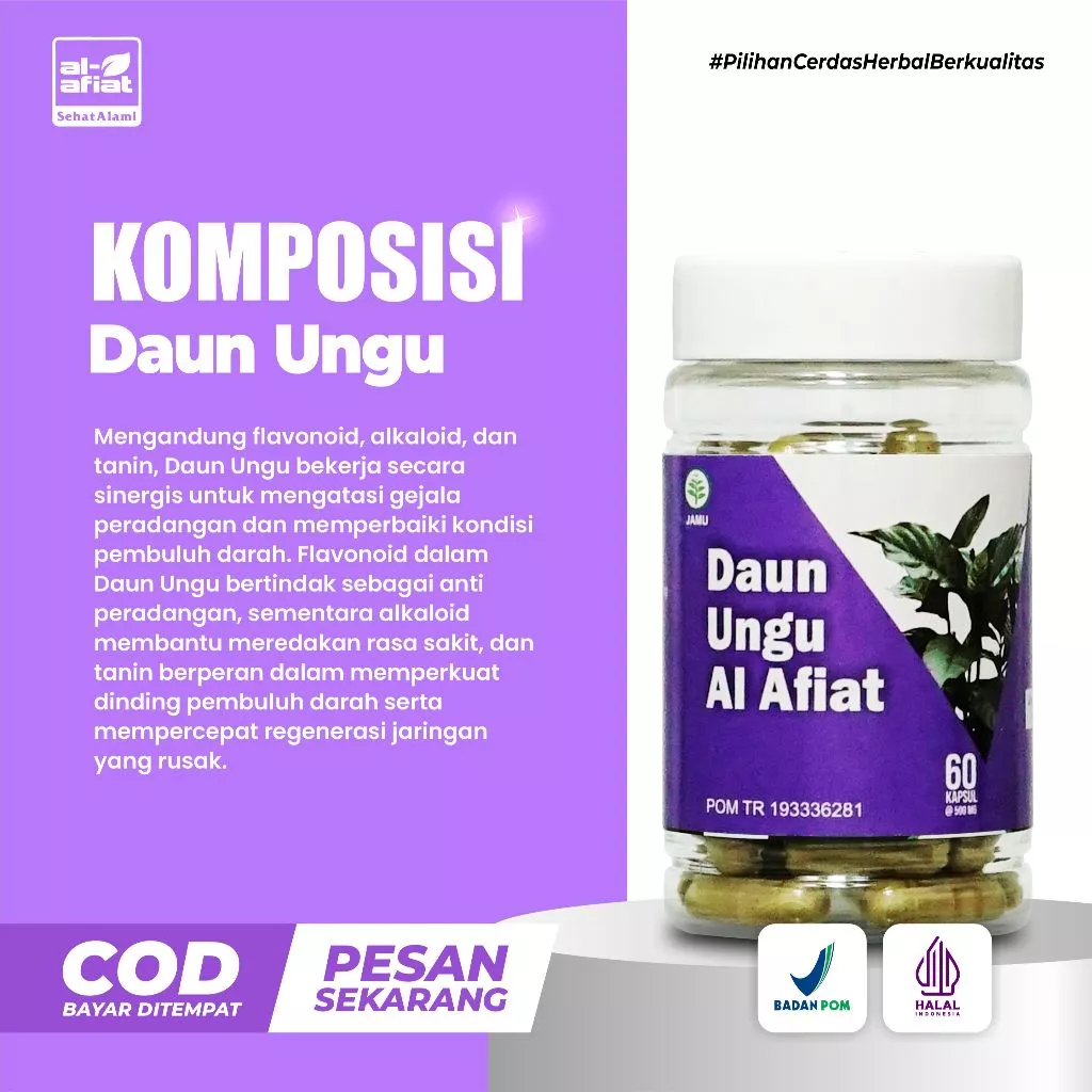 - Komposisi: 100% Ekstrak Graptophyllum pictum folium (500 mg per kapsul).